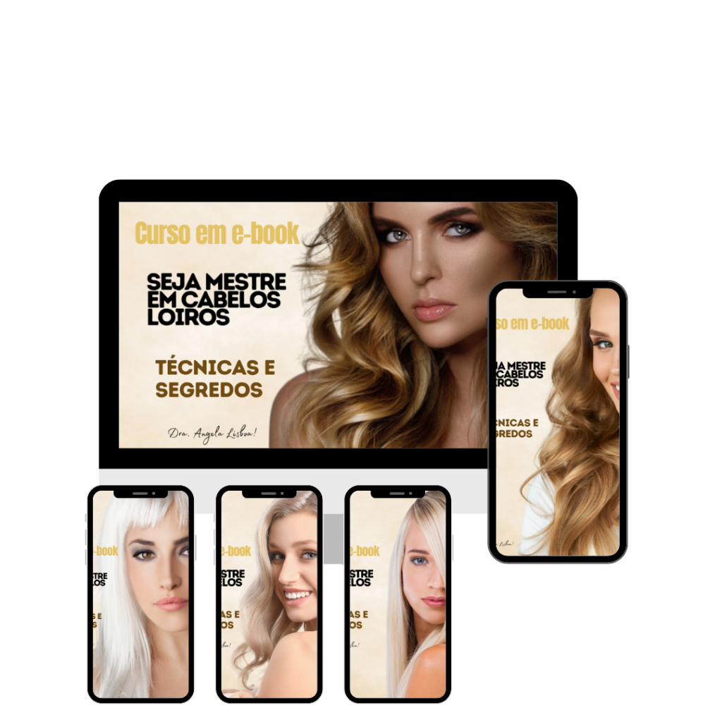 conheça os três cursos em e-book de qualidade Premium, únicos e mais completo do Brasil. Seja mestre em cabelos loiros, desvendando os segredos da limpeza de pele profunda, seja mestre nos alisamentos.